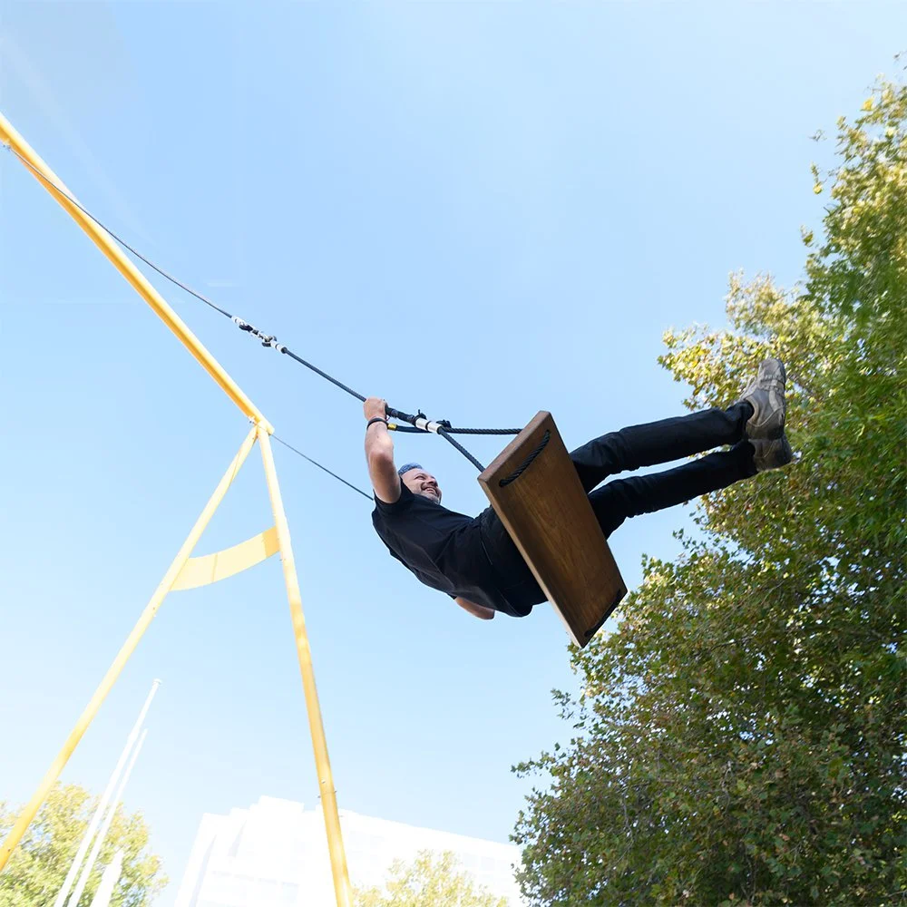 A wheelchair platform attaches to the swing so that persons with disabilities can share this experience.